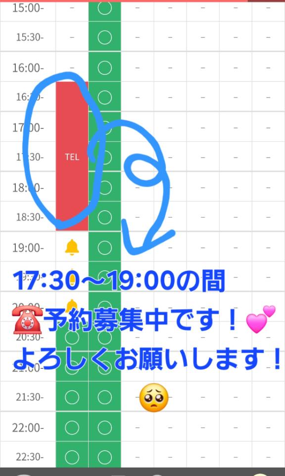 17:30~19:00の間空いてます! 10/29 16:53